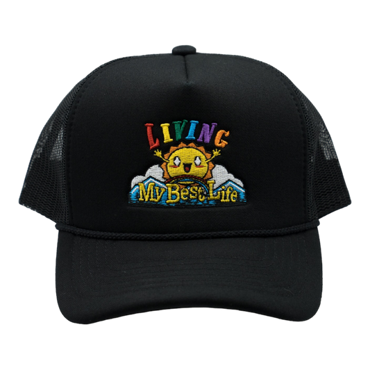 Living My Best Life Sunshine Foam Trucker Hat (Black)