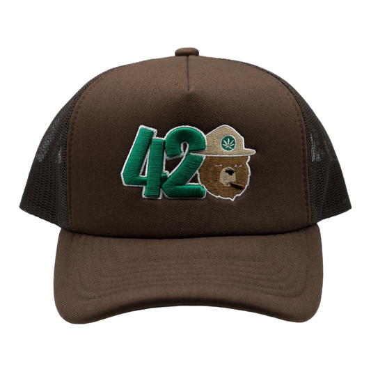 420 Smokey Bear Foam Trucker Hat (Brown)