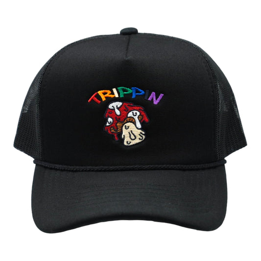 Trippin Mushroom Foam Trucker Hat (Black)