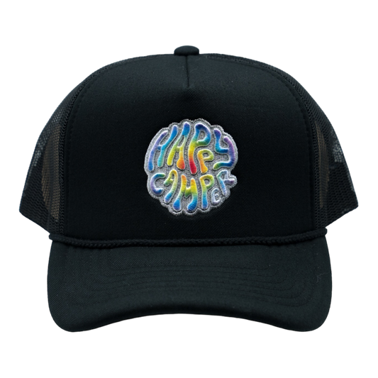 Happy Camper Tye Dye Foam Trucker Hat (Black)