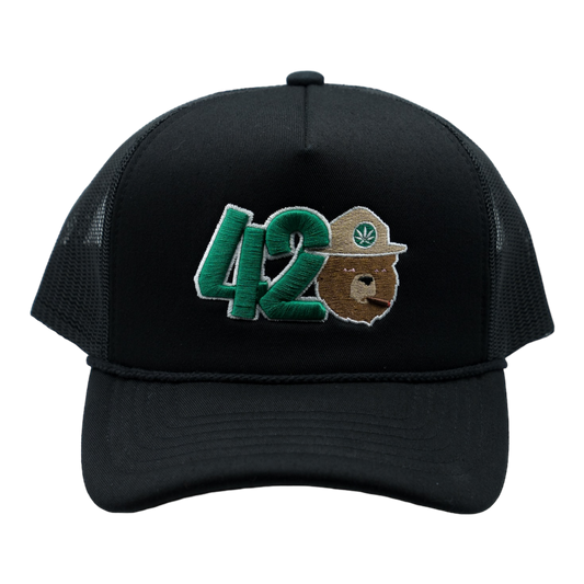 420 Smokey Bear Foam Trucker Hat (Black)