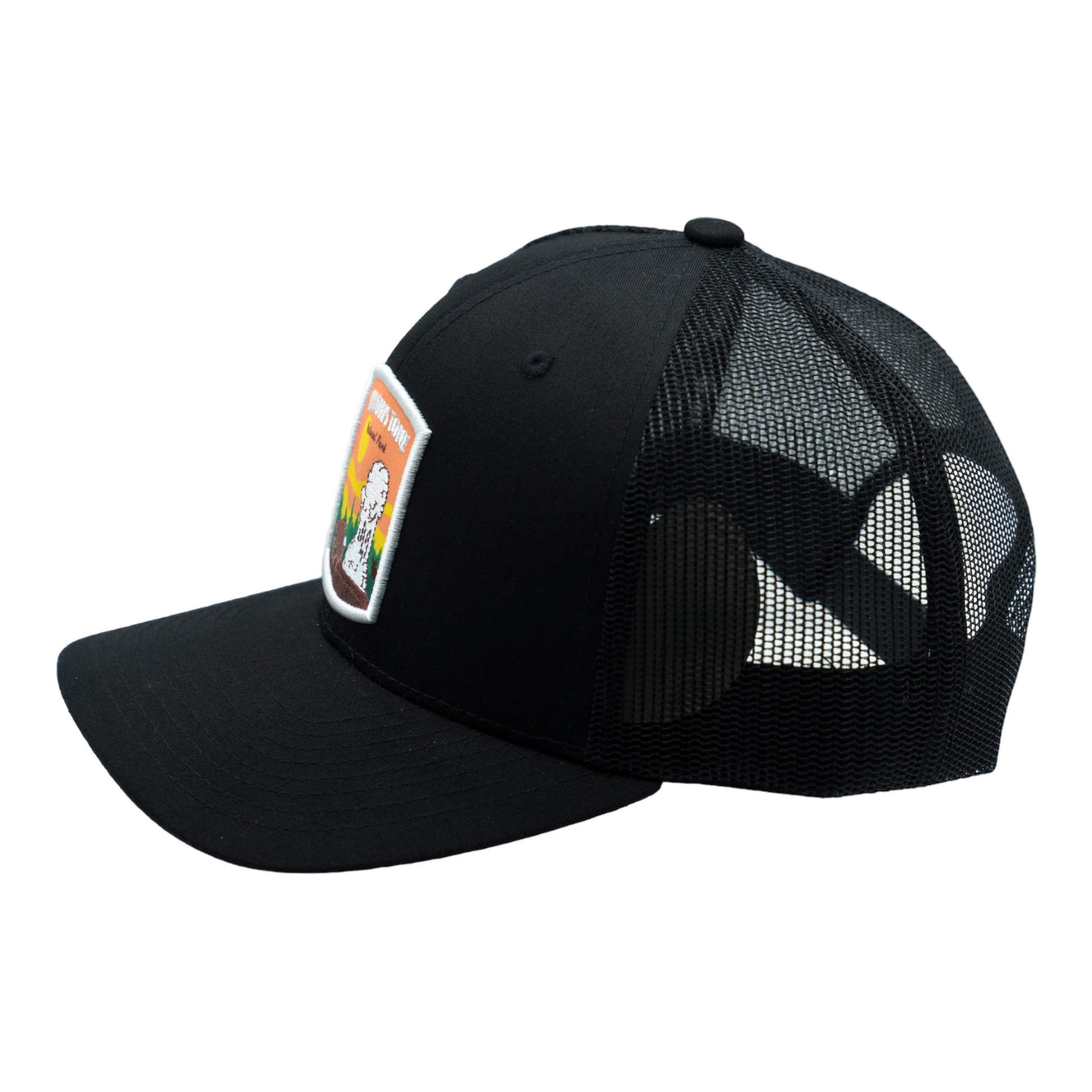This 6-panel trucker hat features a custom Yellowstone National Park Patch on the front.